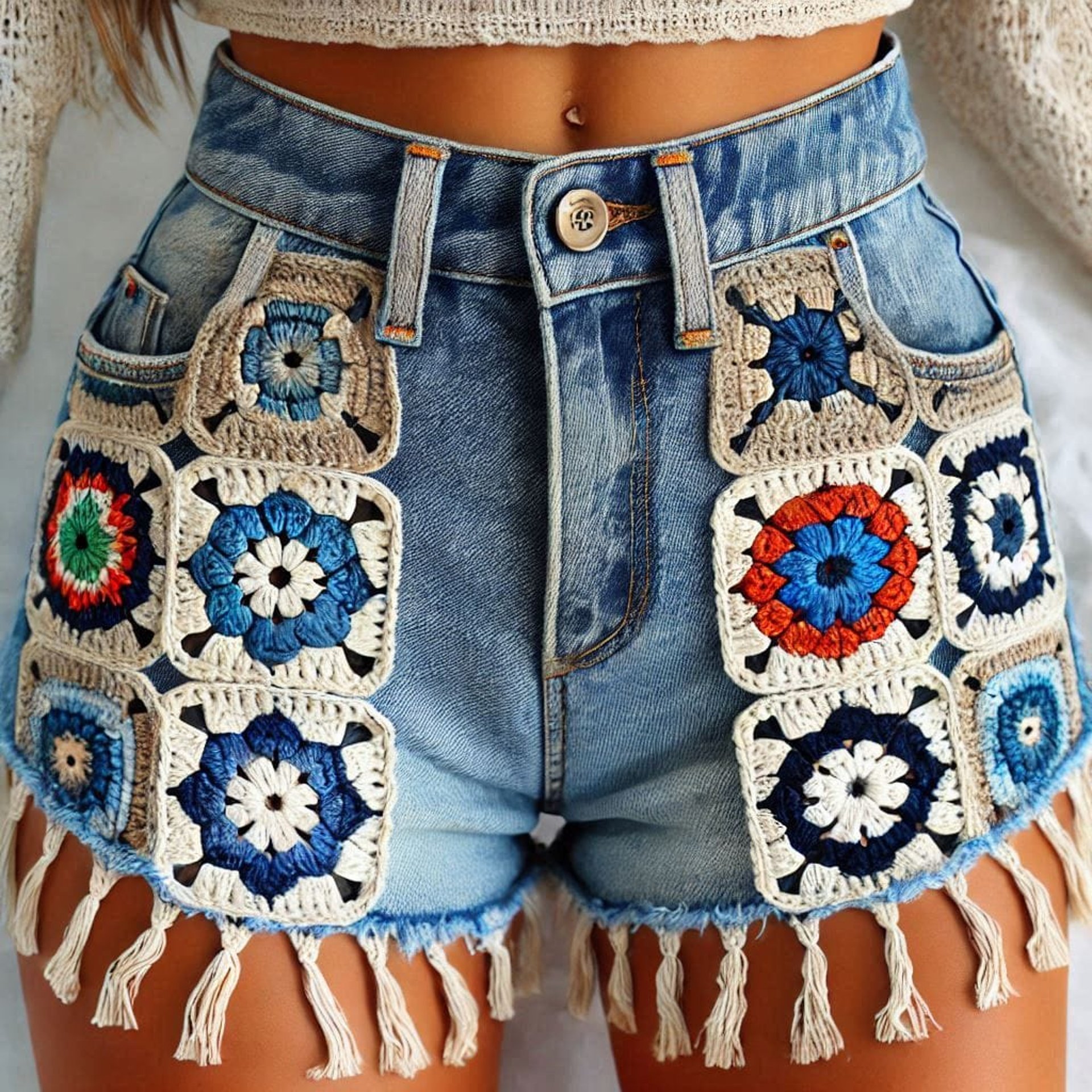 Passo a passo simples para fazer e aplicar quadradinhos e triângulos de crochê em camisetas, jeans e malhas.