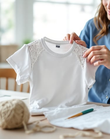 Passo a passo simples para fazer e aplicar quadradinhos e triângulos de crochê em camisetas, jeans e malhas.